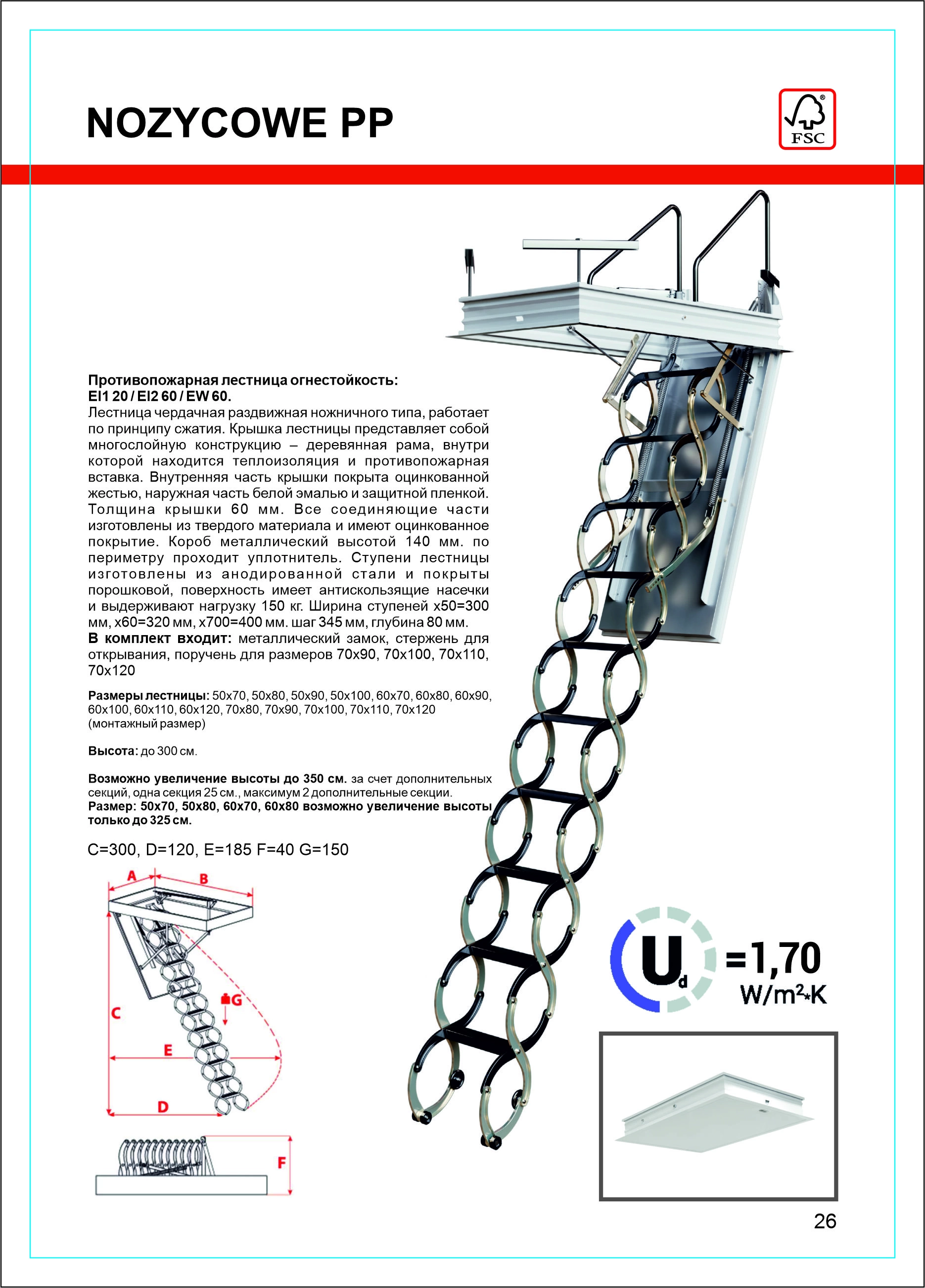 Чердачная лестница OMAN STANDARD 60×120 см, h-280 см