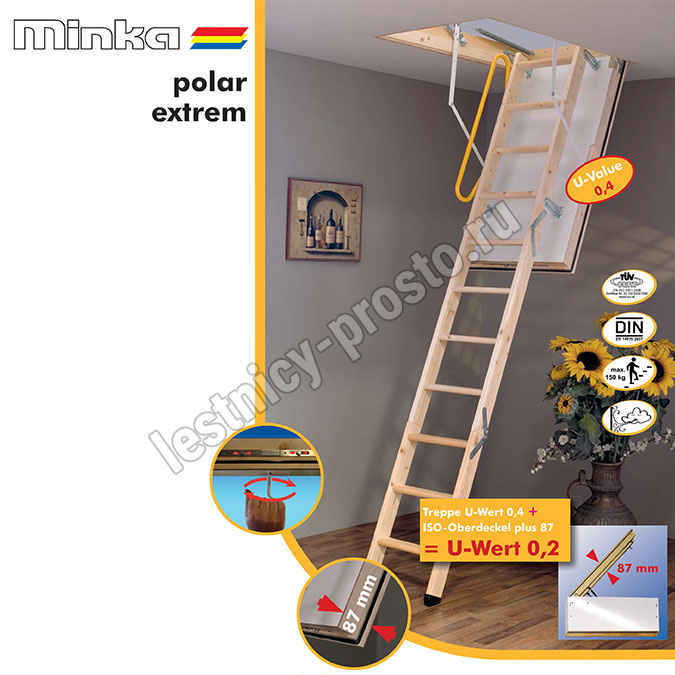 Чердачная складная лестница MINKA POLAR EXTREM 140×70 см, h-280 см