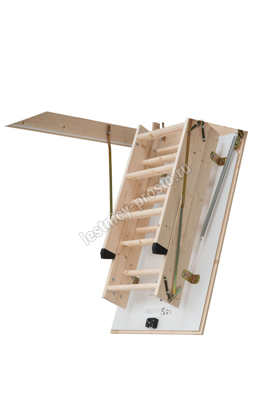 PROF 36 - трехсекционная утепленная лестница из скандинавской медленнорастущей ели, отличающейся повышенной прочностью, ступени из сосны, имеют антискользящие насечки.