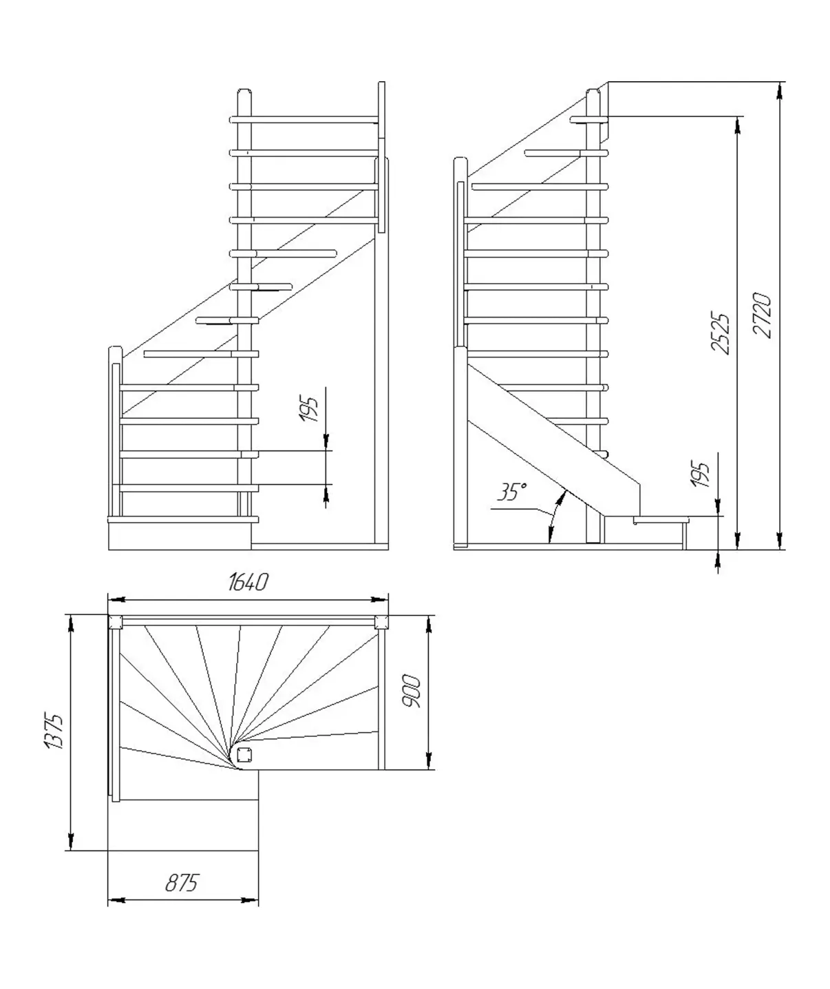 Высота лестницы 2725 мм