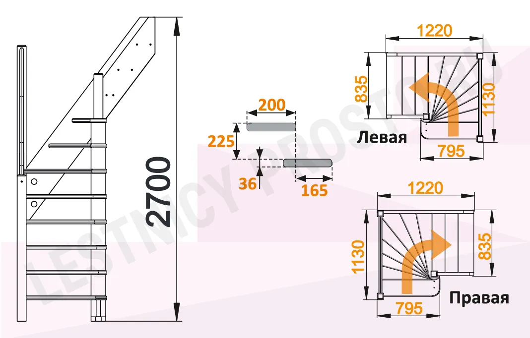 | Лестница из сосны под покраску ЛС-91М+1 ступень сверху |
