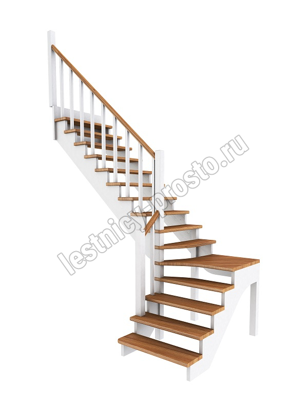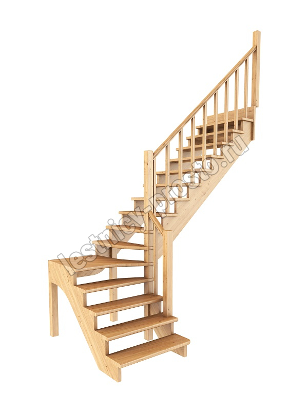 Базовый комплект включает в себя деревянные элементы лестницы и ограждения без какого-либо покрытия.