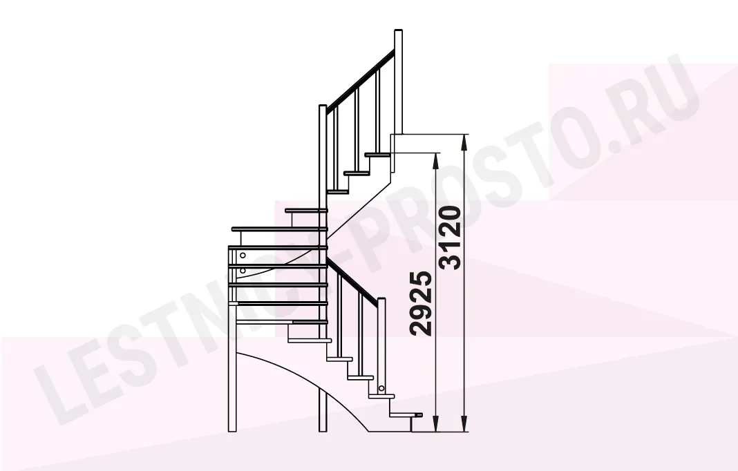 Схема лестницы К-103М с поворотом налево