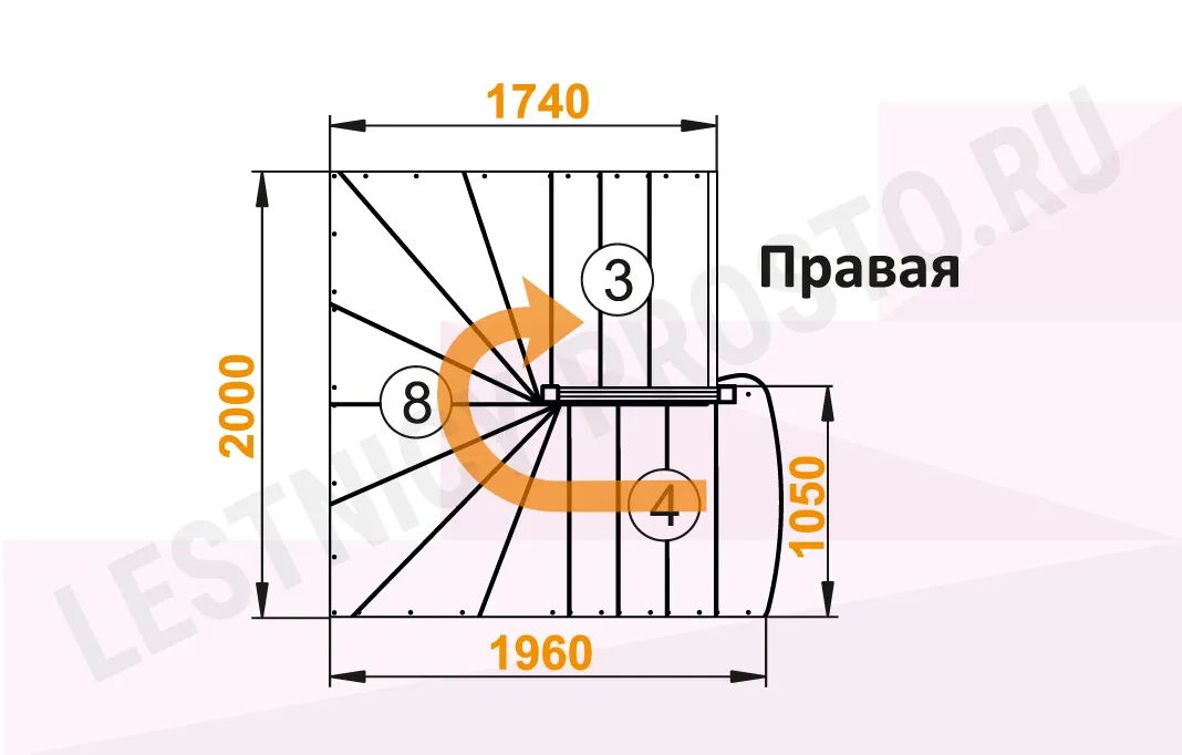 Схема лестинцы К-103М с поворотом направо