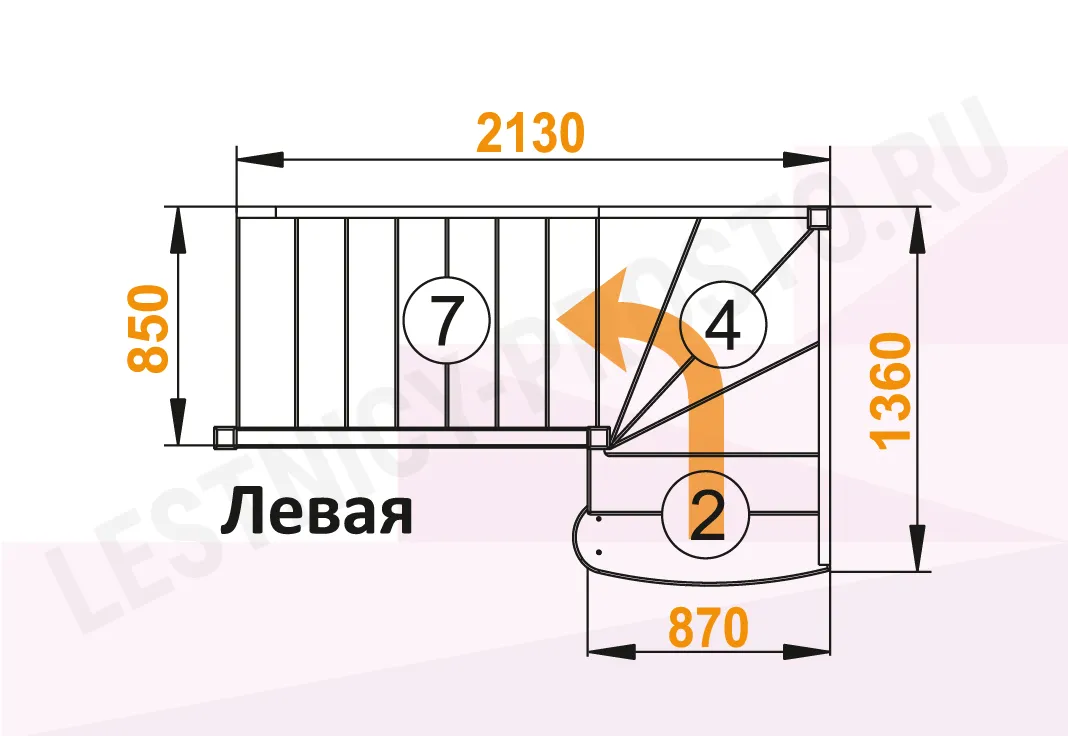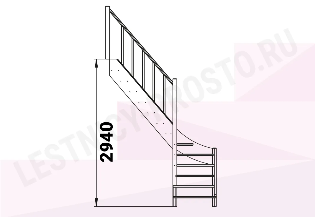 Лестница из сосны ЛС-07М/4 с подступёнками под покраску