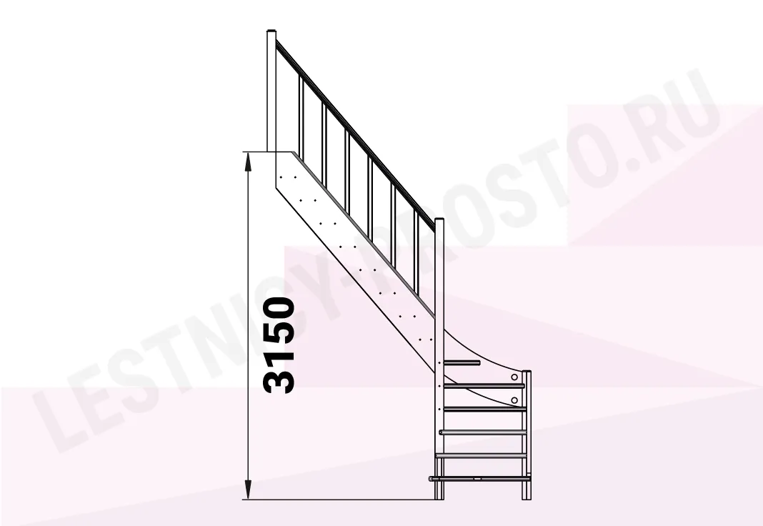 Обратите внимание! Данный вариант лестницы изготовлен из сосны эконом-класса, которая имеет заметные области синевы - это никак не отражается на прочности и надёжности лестницы, но может быть заметно при прозрачных покрытиях и покраске лестницы в светлые тона.