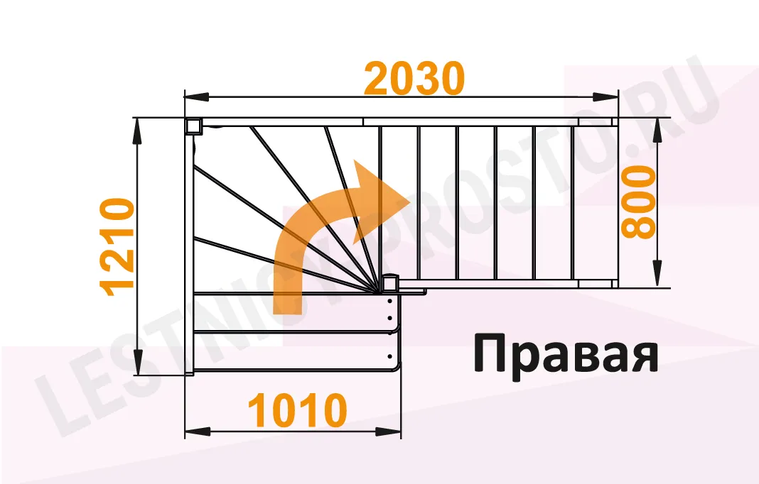 Схема лестницы ЛС-92М/5 с поворотом налево