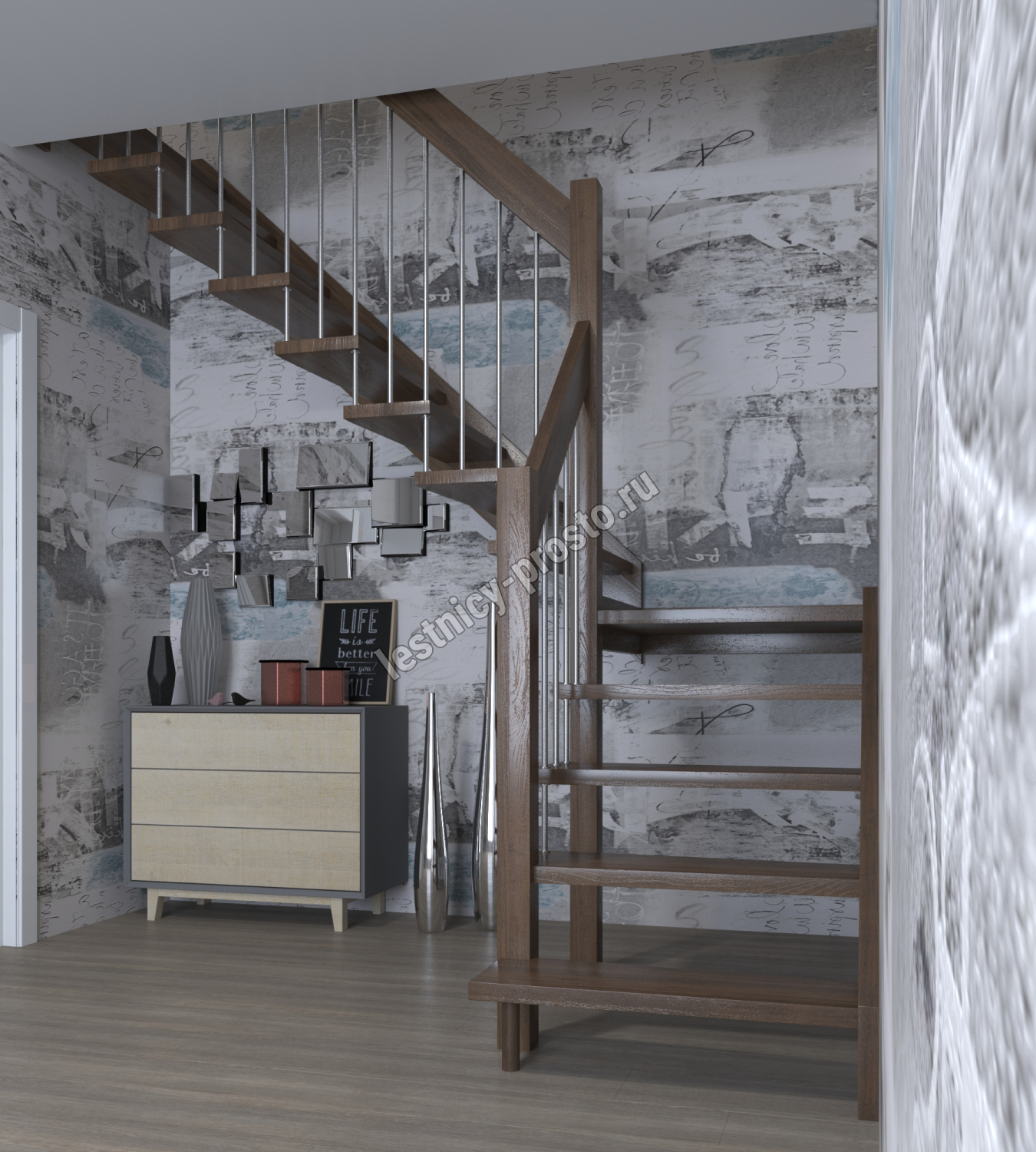 возможна комбинированная лестница: из сосны (ступени бук, ясень, дуб);