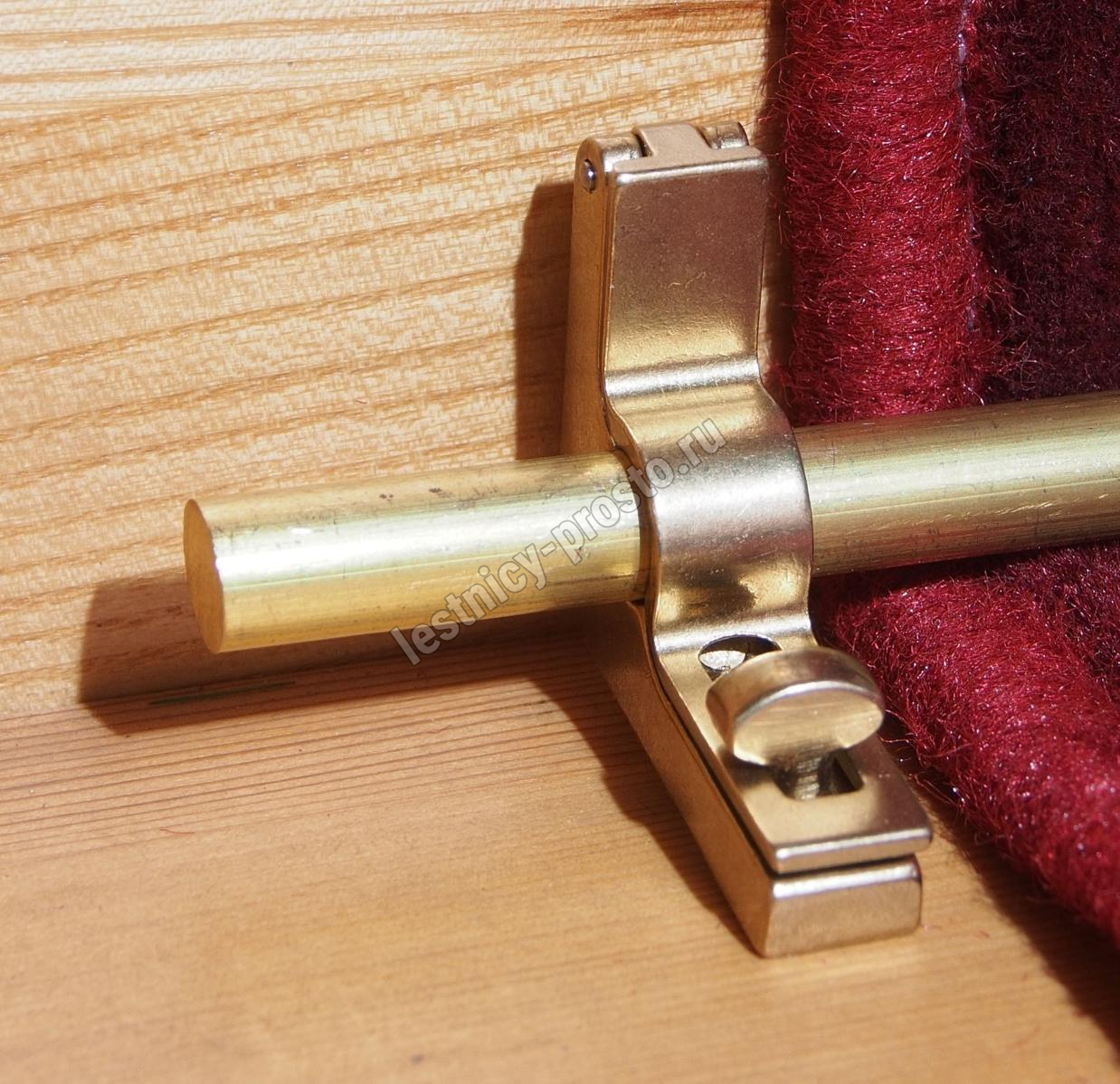 Ковродержатель комплектуется двумя держателями из латуни цвета золото, а также цельным прутком из латуни длиной от 251 до 300 см. Конструкция является сборно-разборной не требующей демонтажа креплений, что делает ее долговечной и очень удобной для чистки ковров и ковровых покрытий.