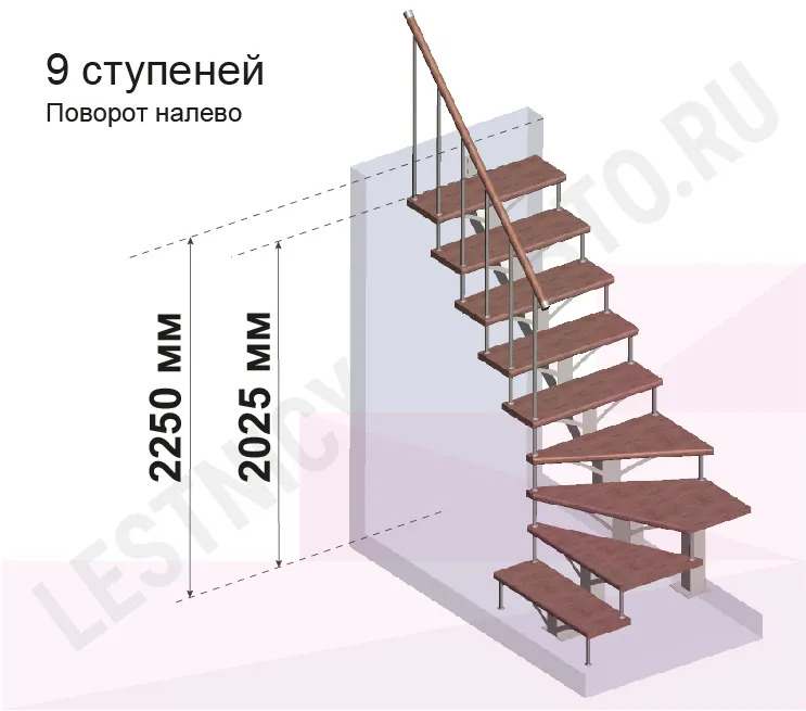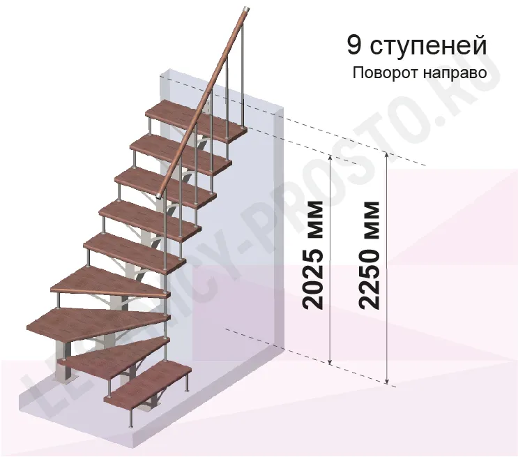 Лестница PROSTO MONO Г-образная h225 см, ступени лиственница