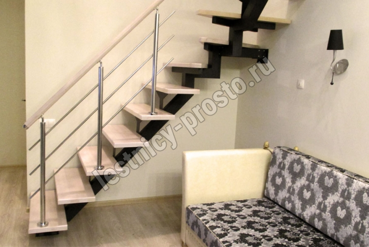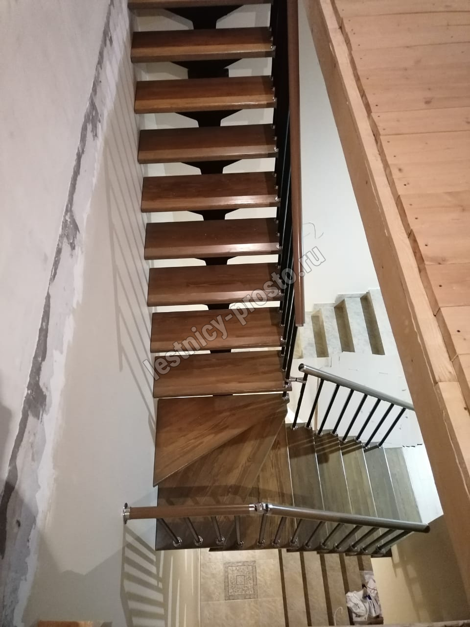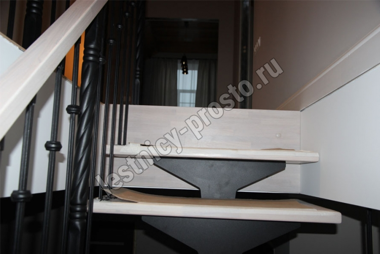 Ступени лестницы изготовлены из дерева категории А/В паркетной склейки без какого-либо покрытия.