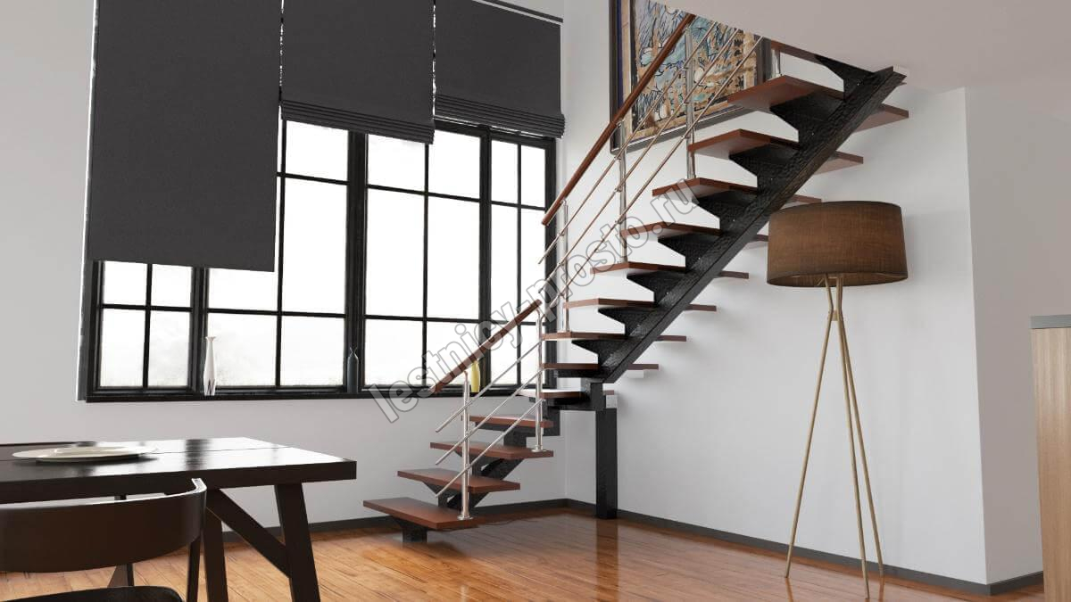 Основой лестницы служит цельносварной центральный косоур, который обеспечивает надёжную прочность конструкции и "парящий" дизайн, лестница с таким каркасом в интерьере смотрится легко и воздушно.