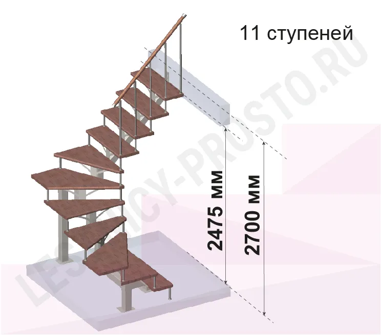 Высота лестницы 2475 - 2700 (11 ступеней) мм