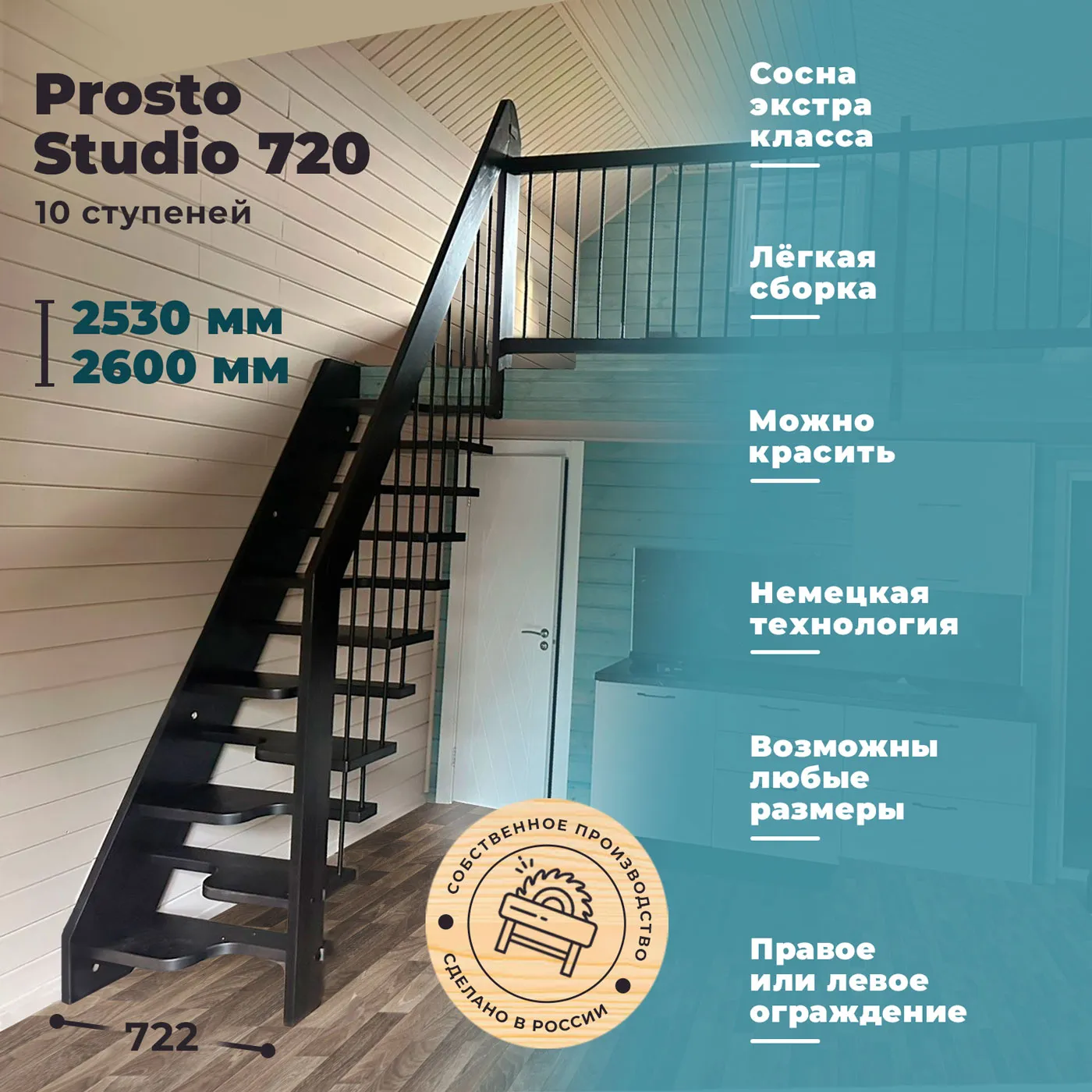 Лестница PROSTO MONO П-образная, h337.5 см, ступени лиственница