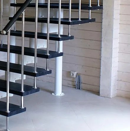 Ступени лестницы изготовлены из дерева категории А/В паркетной склейки без какого-либо покрытия. Вы можете заказать у нас предварительную профессиональную покраску деревянных элементов материалами БИОФА в широкий спектр цветов (стоимость зависит от количества ступеней).