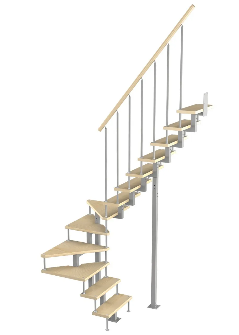 - Возможность устанавливать лестницу как прямую, так и с поворотом внизу или вверху; при этом нужно понимать, что поворот менее удобен, чем прямой участок лестницы.