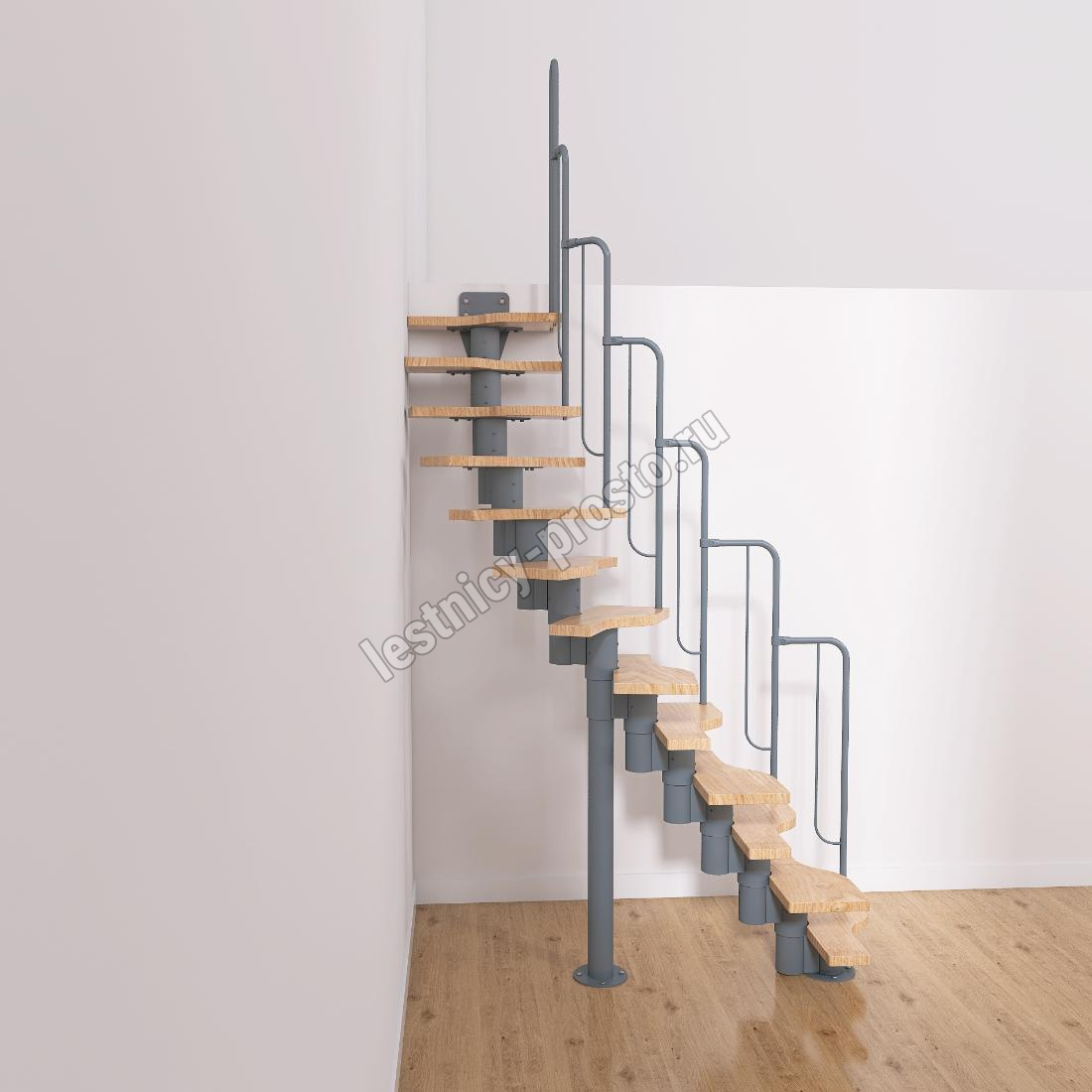 Лестница Prosto Urban Grey г-образная гусиный шаг 600 мм, h234-336 см (13 ступеней)