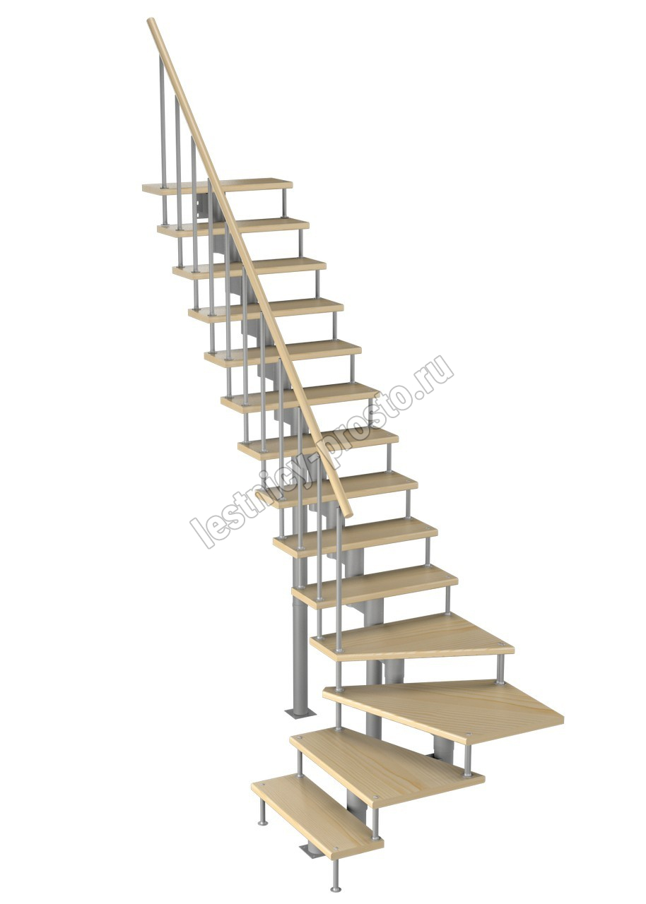 Модульная лестница Фаворит 180 2520-2660, Серый, Лиственница, Нержавеющая сталь