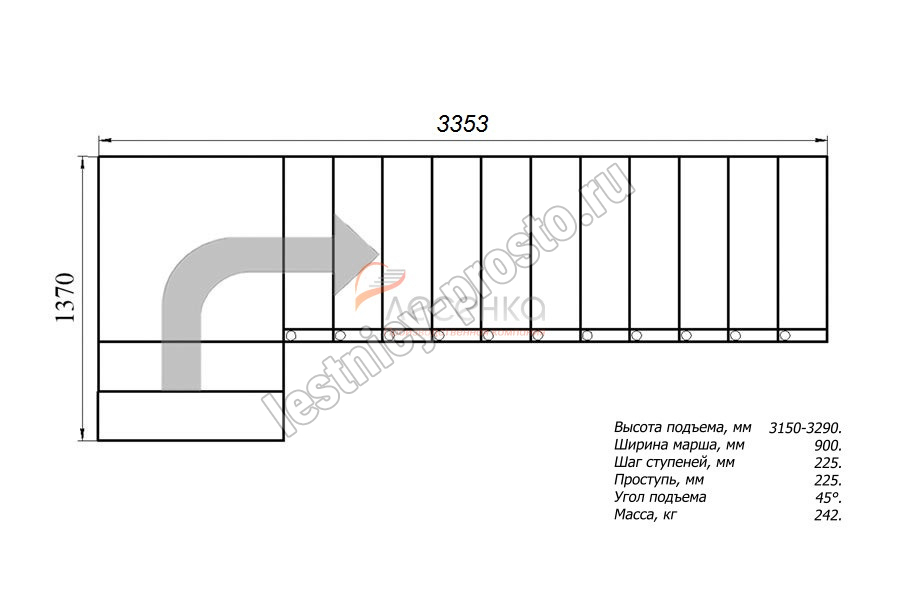 Модульная лестница Статус 225 3150-3290, Белый, Сосна, Крашеная, Без Ступений