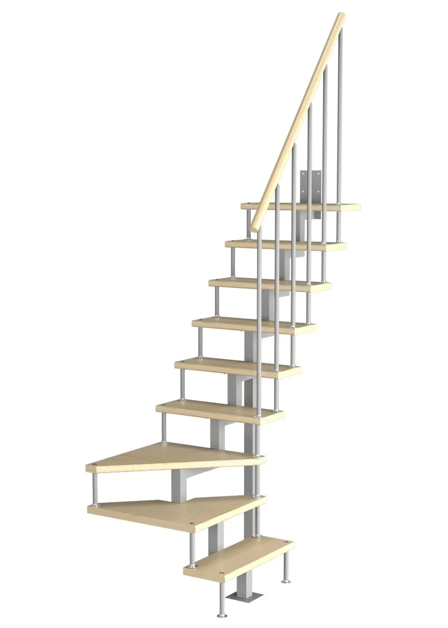 Модульная малогабаритная лестница Компакт 2025-2250, Белый, Бук, Нержавеющая сталь