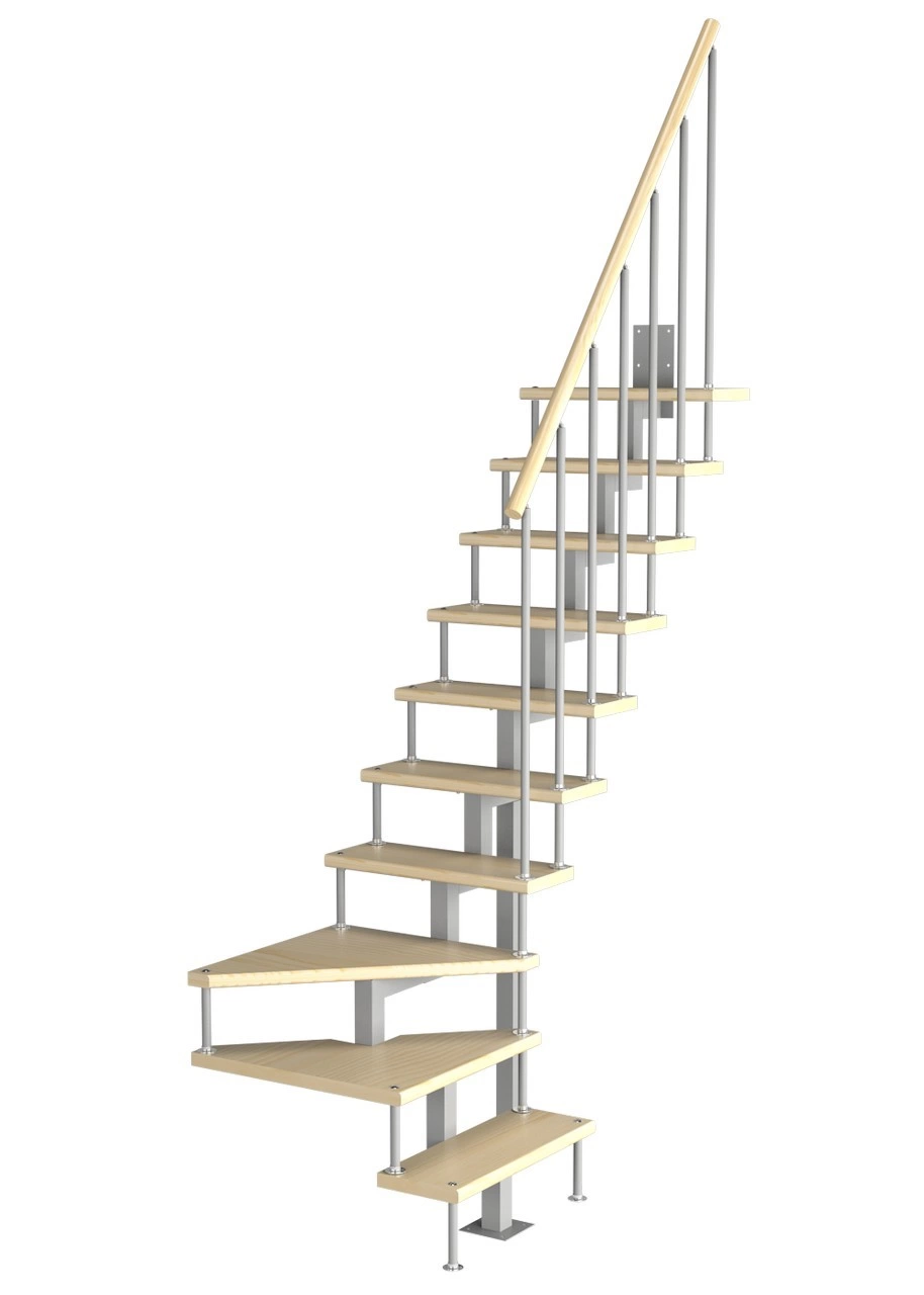 Модульная малогабаритная лестница Компакт 2250-2475, Серый, Лиственница, Крашеная