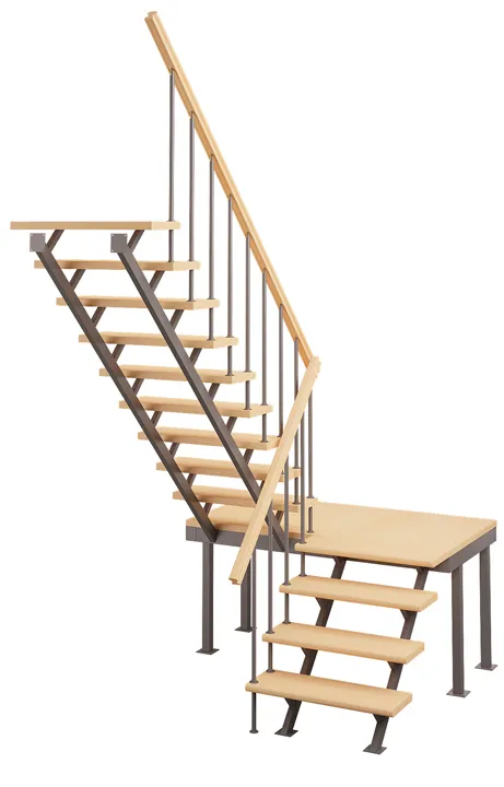 Лестница поставляется в разобранном виде, упакованная в два ящика. Монтаж производится силами двух человек, в соответствии с указаниями, приведёнными в паспорте лестницы.