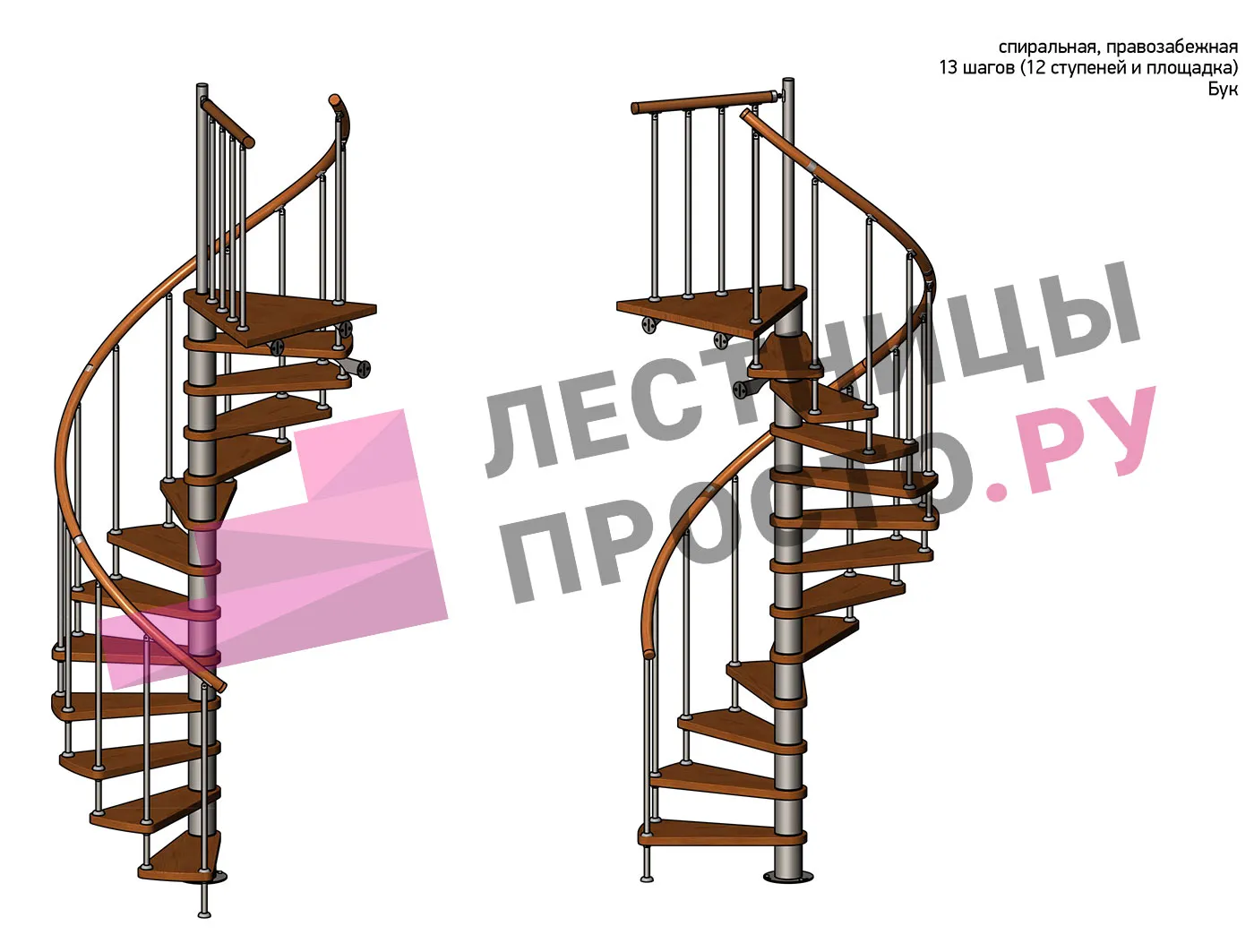 Правая, d=140см, 12 ступеней + площадка