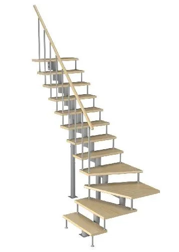 Лестница представлена в двух вариантах: с поворотом направо и с поворотом налево. Благодаря возможности регулировать высоту шага с помощью пластиковых вставок (входят в базовый комплект), высоту лестницы можно варьировать в пределах от 2860 до 3090 мм. Кроме того, купив дополнительную секцию для этой лестницы, можно поднять высоту до 3320 мм.