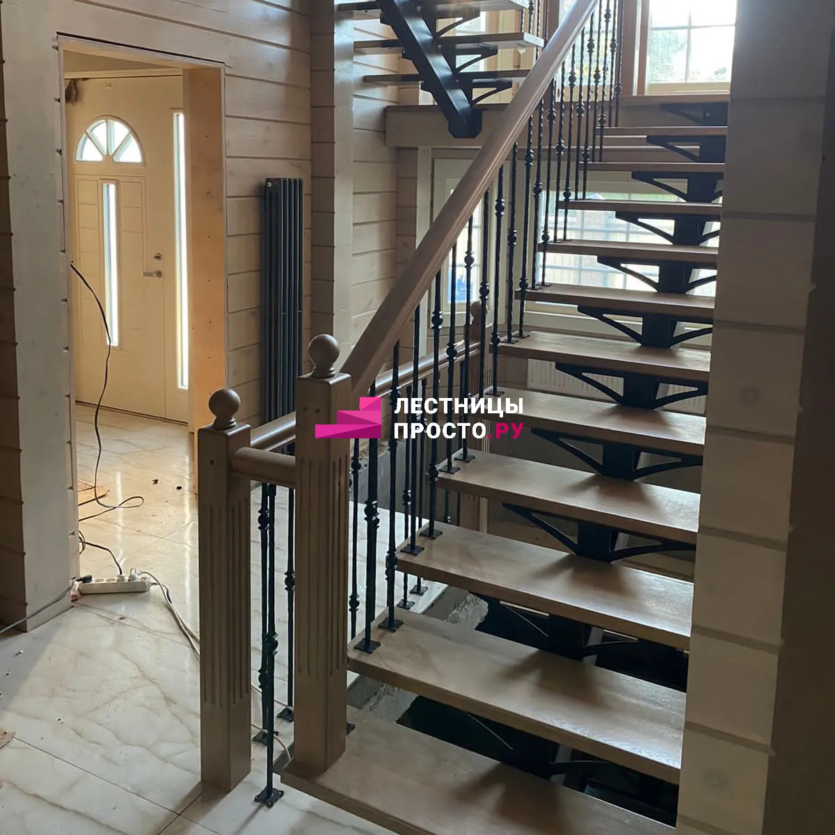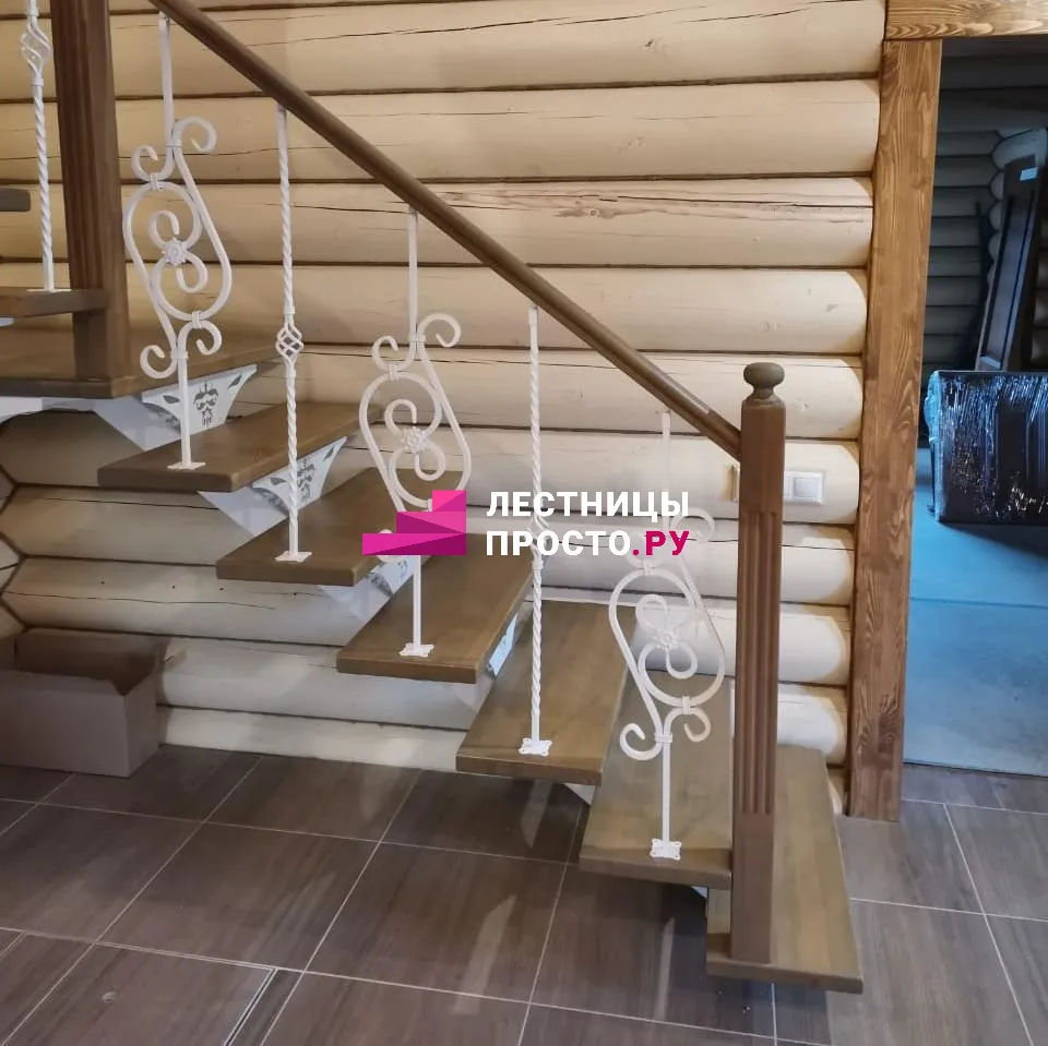 Лестница на центральном каркасе с коваными балясинами ЛП 703