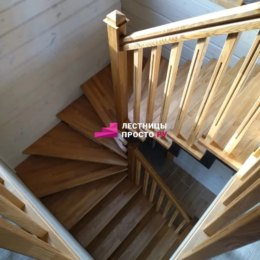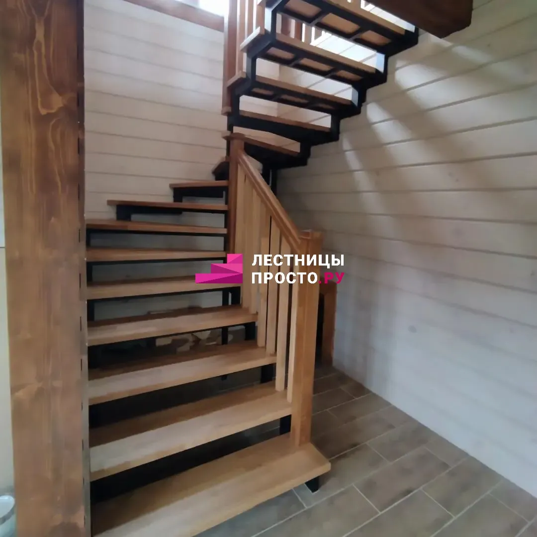 Металлическая лестница с дубовыми ступенями и ограждением LP-1-20