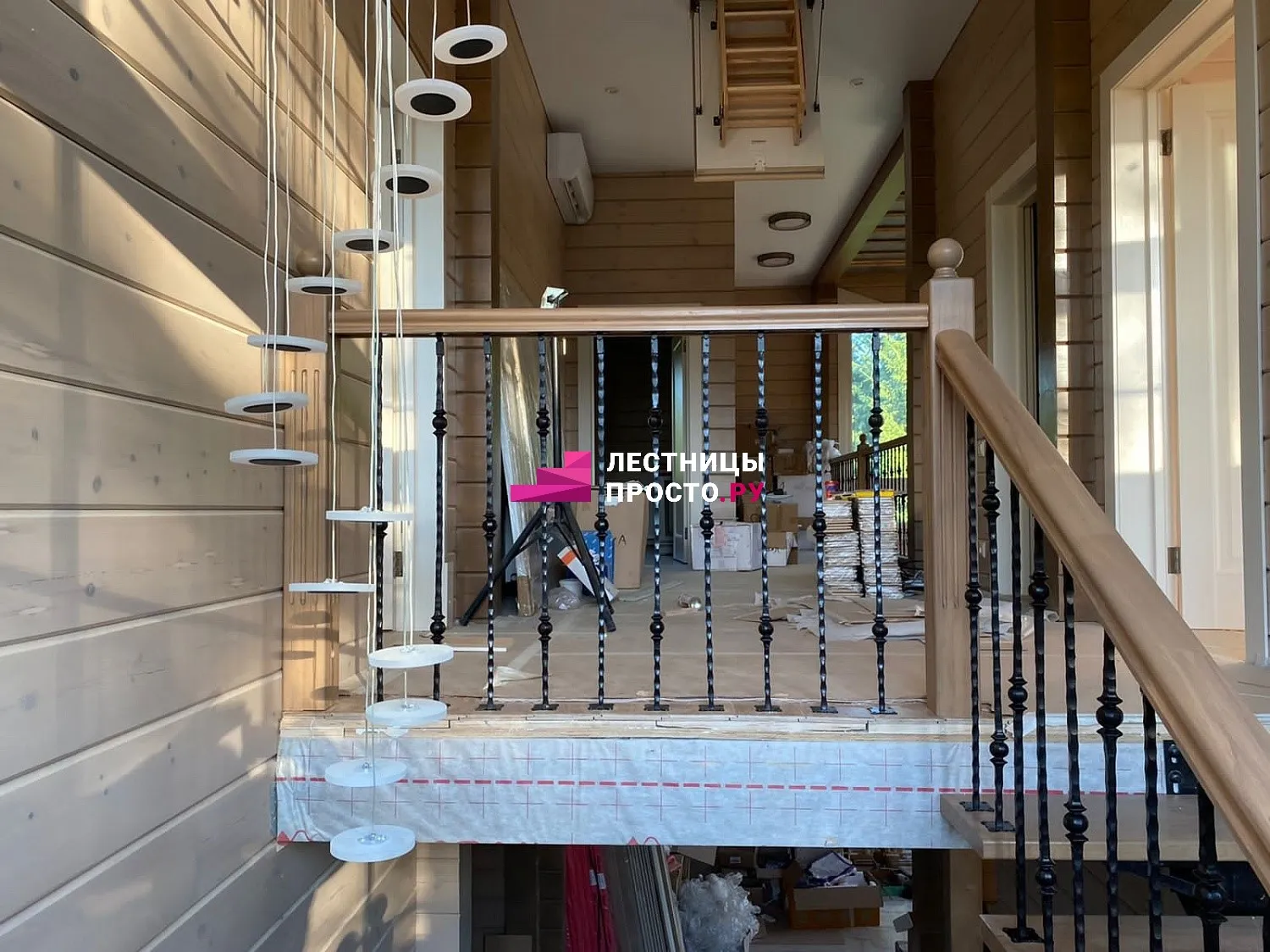 Лестница (каркас, ступени, ограждение) - 837000, покраска деревянных деталей - 83000, монтаж - 80000.